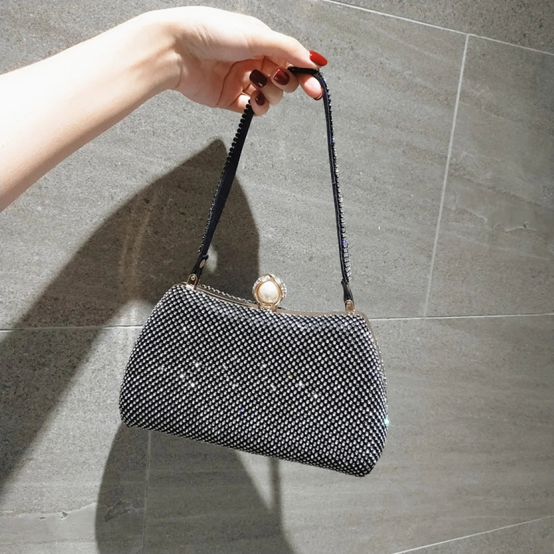Our Vintage Rhinestones Glitter Handbag is the ultimate fashion statement. It features a vintage-inspired studded rhinestones design with a flip buckle pearl accent and a hidden oblique chain. This chic bag is an amazing addition to your wardrobe.