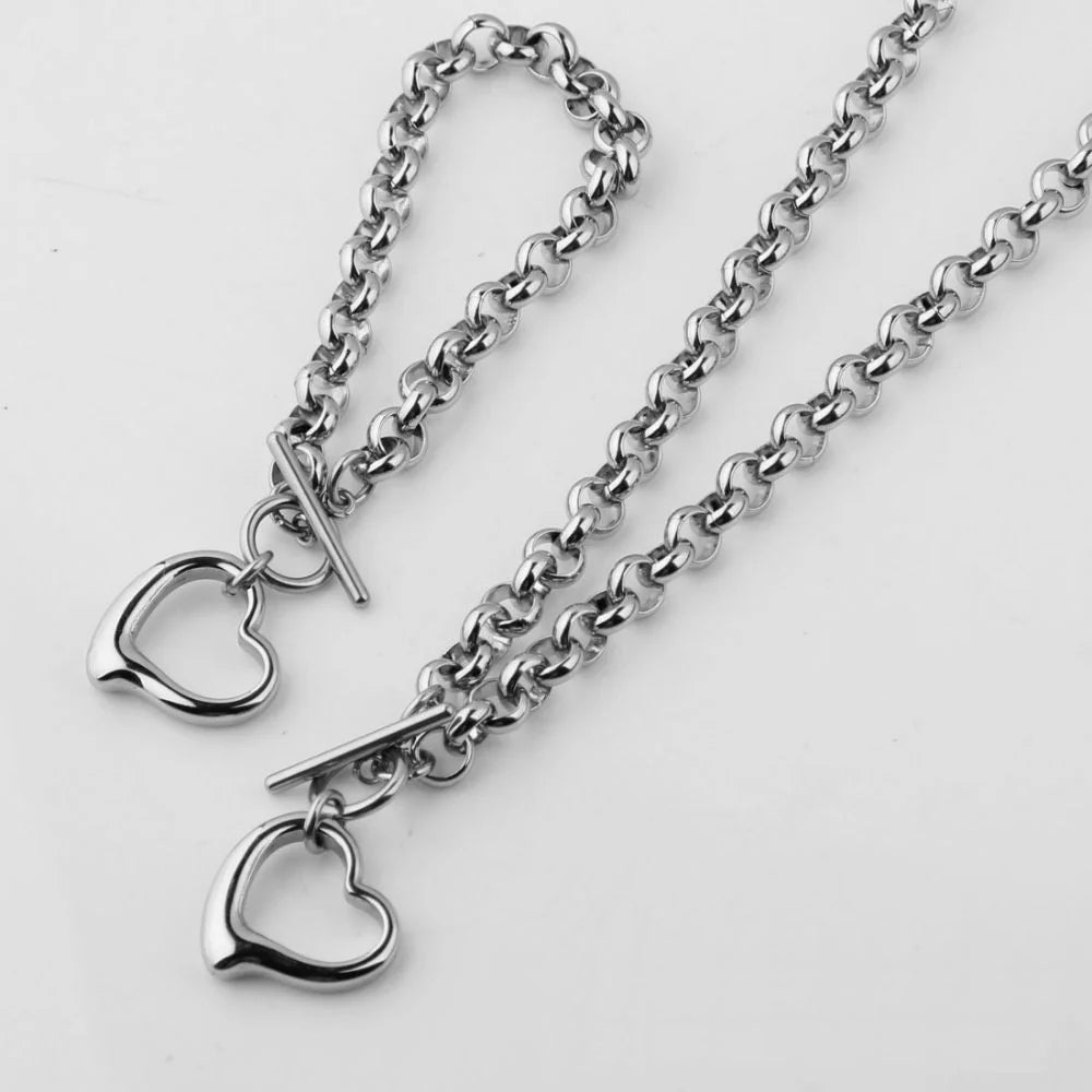 Capture the allure of a bygone era with this vintage jewelry set! Featuring a heart pendant and charming toggle clasp, this set is crafted with titanium steel; providing maximized durability, lightweight, comfortable to wear, and does not tarnish. Now exclusively available in silver.